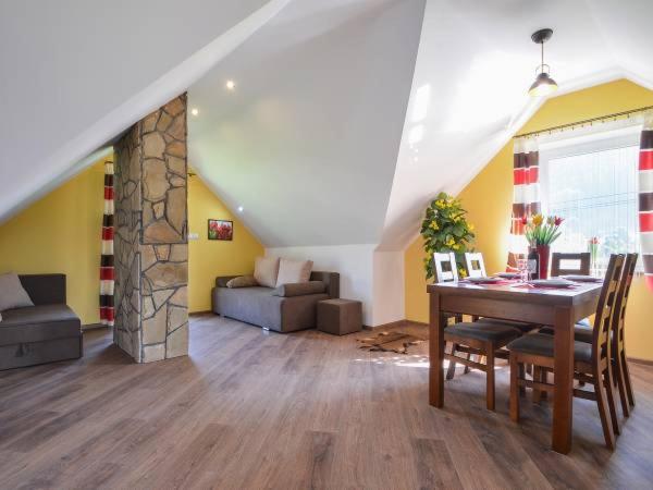 Rodzinny apartament typu Studio. The studios kitchenette, which features a refrigerator and kitchenware, is available for cooking and storing food. This studio includes a flat-screen TV with satellite channels, a private bathroom as well as a balcony with garden views. The unit offers 4 beds. Studio - 6 osobowy. Powierzchnia pokoju ok.: 50 mkw.