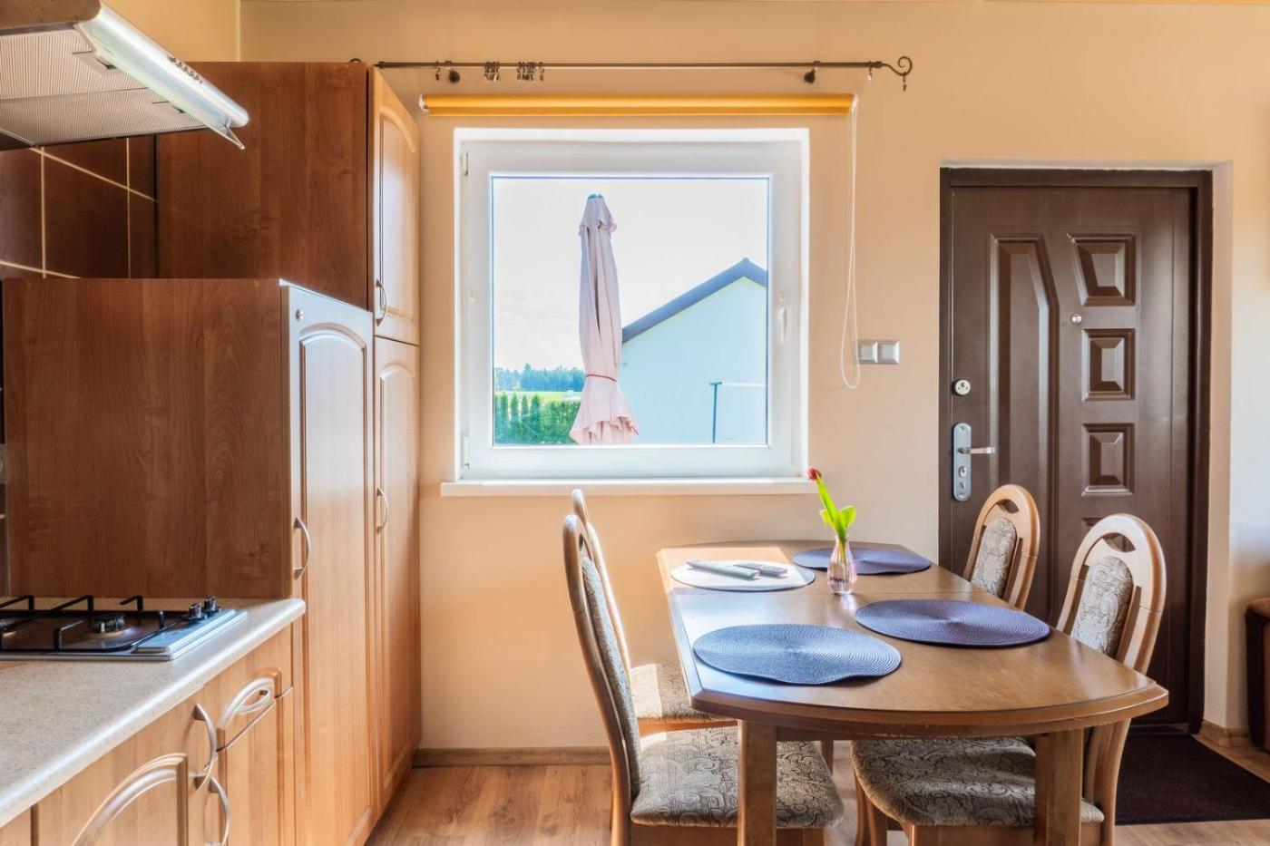 Dom z 2 sypialniami. Boasting a private entrance, this holiday home also comes with 1 living room, 2 separate bedrooms and 2 bathrooms with a shower. Guests will find a stovetop, a refrigerator, kitchenware and a microwave in the fully equipped kitchen. The holiday home also includes a barbecue. Featuring a terrace with garden views, this holiday home also features a tea and coffee maker and a flat-screen TV. The unit has 5 beds. Dom wakacyjny - 8 osobowy. Powierzchnia pokoju ok.: 55 mkw. ;
