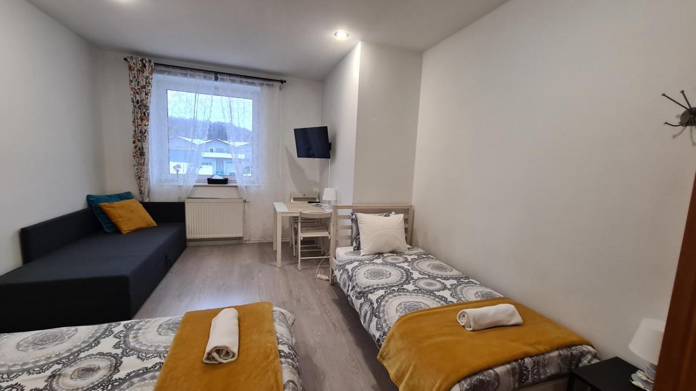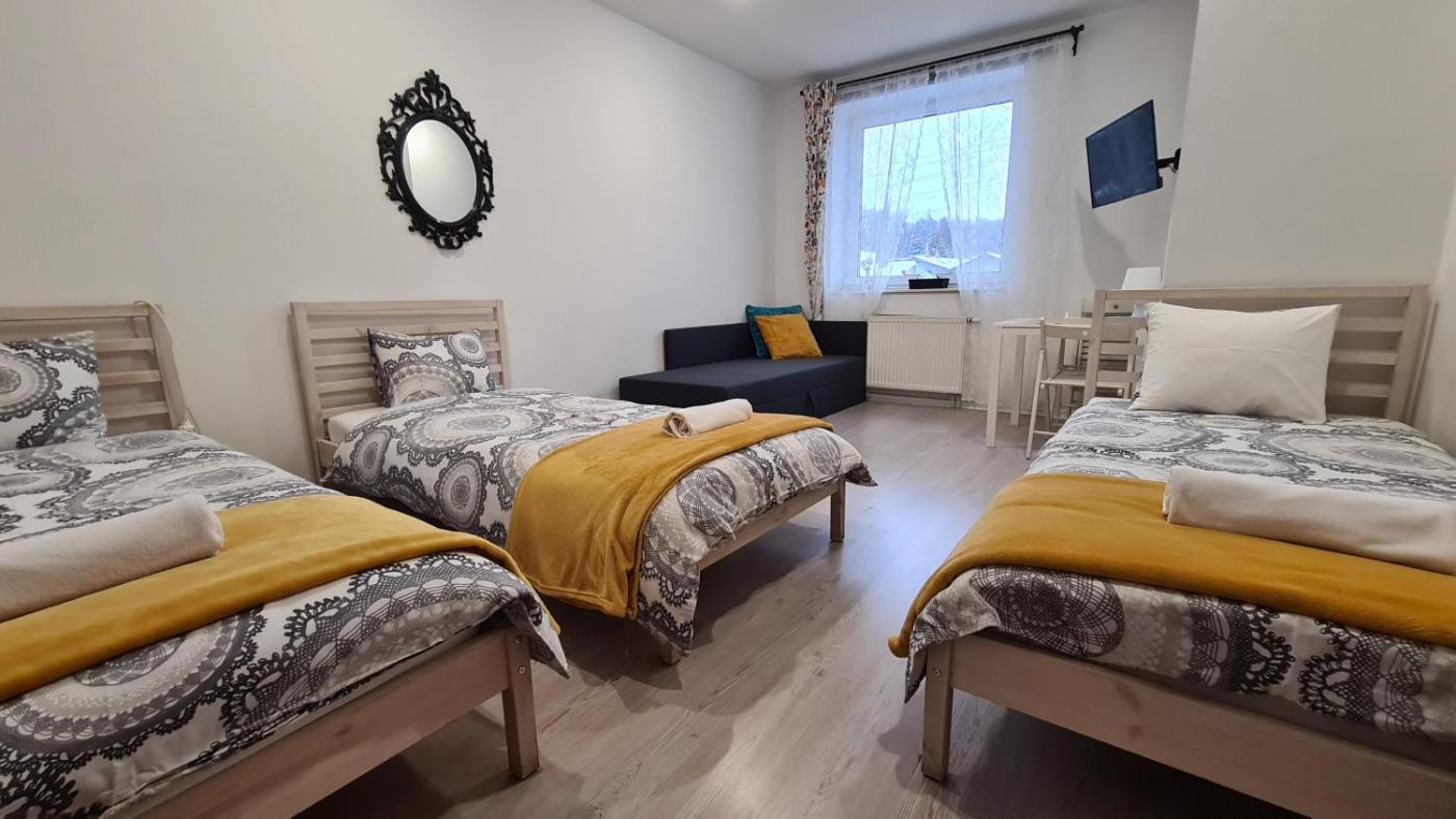 Pokój Trzyosobowy ze wspólną łazienką. This triple room has a wardrobe, heating and a flat-screen TV. The unit has 2 beds and 1 futon. Pokój Trzyosobowy - 3 osobowy. Powierzchnia pokoju ok.: 15 mkw.